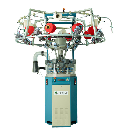 高效8路單面電子提花針織圓機(jī),每路2個(gè)選針點(diǎn),具三功位編織技術(shù)(配置16只選針器)。