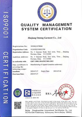 浙江歐騰服飾有限公司位于世界小商品之都-義烏。創(chuàng)立于2015年,是一家專業(yè)生產(chǎn)無縫針織運(yùn)動(dòng)服飾和內(nèi)衣的工貿(mào)一體企業(yè),擁有自主出口權(quán)。 工廠的占地面積約16000平方米 ,引進(jìn)了大型圣東尼、高騰等多種先進(jìn)的制衣設(shè)備300余臺(tái)。月產(chǎn)能可達(dá)90萬件。 歐騰服飾每年投入近百萬資金打樣開發(fā)新產(chǎn)品,有著一支高素質(zhì)設(shè)計(jì)、技術(shù)員工隊(duì)伍。工廠先后通過了ISO 9001質(zhì)量管理體系認(rèn)證、BSCI認(rèn)證、GRS認(rèn)證、OEKO-TEX國際生態(tài)紡織品認(rèn)證等多項(xiàng)專利檢測報(bào)告。可提供OEM&ODM服務(wù)。歐騰服飾以一套完整、科學(xué)的質(zhì)量管理體系,生產(chǎn)的服裝從原材料紗線到成衣,質(zhì)量完全能夠滿足國內(nèi)、國際質(zhì)量要求。獲得了客戶一致好評(píng)。工廠先后獲得省科技型企業(yè)、國家高新企業(yè)、義烏市誠信講信用單位、規(guī)上企業(yè)、信用AAA級(jí)等榮譽(yù)。